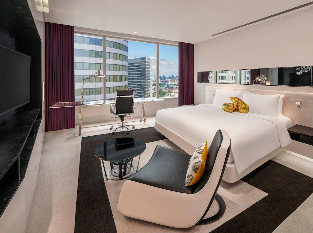 Brief description: a bold, nightlife‑driven hotel that pairs W’s signature playful aesthetic with Thai street‑style influences. With a buzzing lobby bar, creative dining, and a glamorous heritage‑house annex, it appeals to younger luxury travelers, weekenders, and those who want to be in the middle of Bangkok’s social scene.