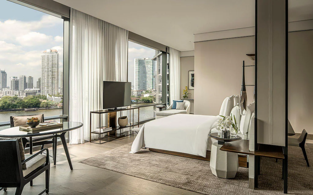 Brief description: a strikingly modern riverfront retreat that blends gallery‑like architecture with lush courtyards and water features. Known for its world‑class dining, art‑driven interiors, and resort‑style pools, it attracts design lovers, affluent leisure travelers, and style‑conscious families.